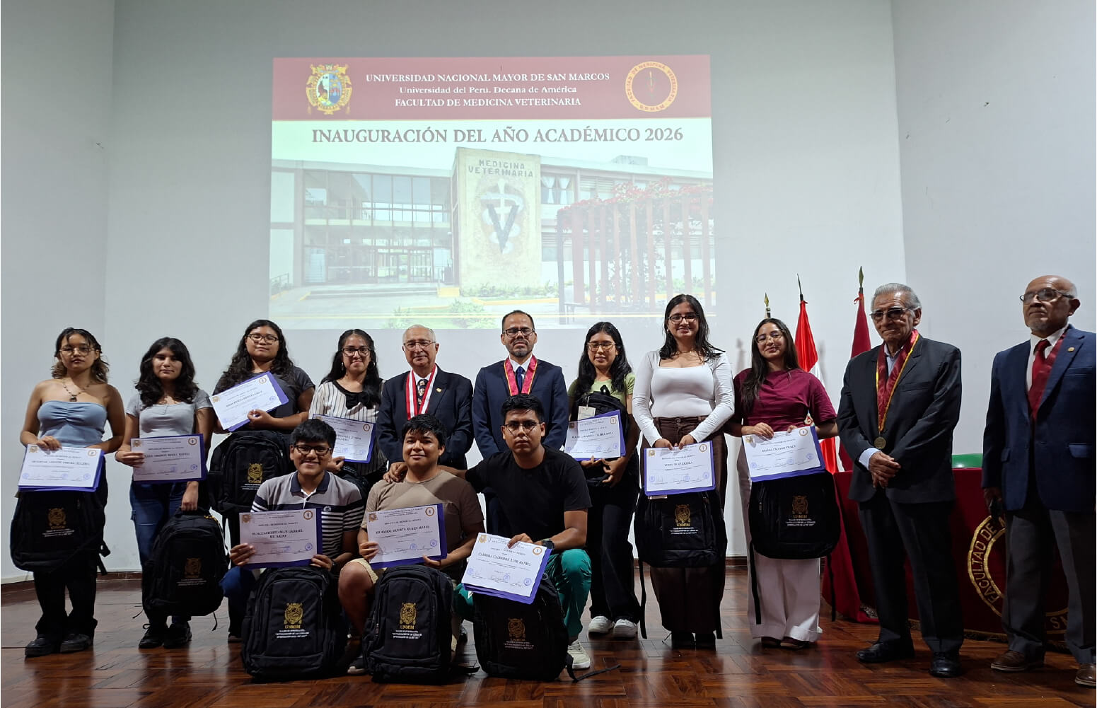 La Facultad de Medicina Veterinaria de la Universidad Nacional Mayor de San Marcos inauguró su año académico 2026 el 20 de abril de 2026, dándole la bienvenida a estudiantes, docentes y administrativos, contando la presencia de las siguientes autoridades: decano Dr. Fernando Carcelén Cáceres, vicedecano académico Dr. Alexei Santiani Acosta, vicedecano de investigación y posgrado Dr. Raúl Rosadio Alcántara y el director de Escuela Profesional de Medicina Veterinaria Dr. Víctor Leyva Vallejos.